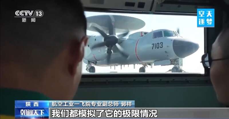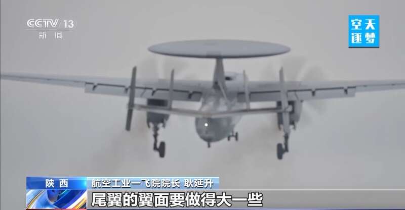 航空工業(yè)一飛院院長 耿延升:它有一個大大的圓盤,是預(yù)警天線的天線罩,我們要達(dá)到比較大的探測距離,預(yù)警探測的天線正面尺寸做得比較大,這么一個大的圓盤在這個小噸位量級的飛機(jī)上已經(jīng)做到了極限,對飛機(jī)重心的限制,對飛機(jī)氣動的限制,對飛機(jī)操縱的限制,都是上限。