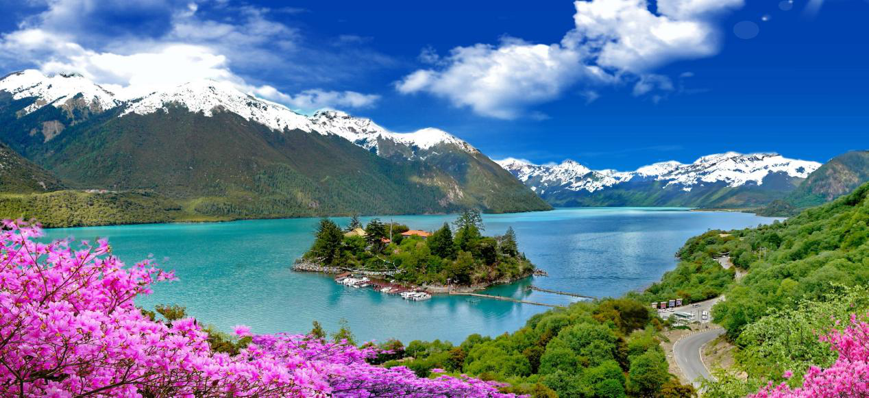 南迦巴瓦峰,銀冠璀璨;雅江桃花,浪破寒煙。