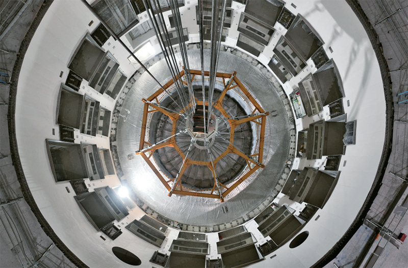 2025年10月1日上午,位于安徽合肥未來大科學城的緊湊型聚變能實驗裝置(BEST)主機首個關鍵部件——杜瓦底座成功落位安裝,標志著項目主體工程建設步入新階段。該裝置建設的穩步推進,對于我國率先開展前沿聚變科學研究、驗證未來聚變堆關鍵技術、持續引領國際聚變能發展具有重大戰略意義。圖為在裝置建設現場拍攝的杜瓦底座(無人機照片)。 新華社記者 周牧/攝